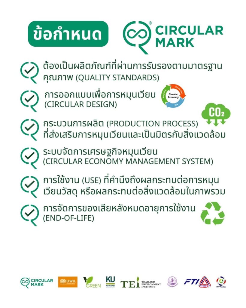 ฉลากผลิตภัณฑ์หมุนเวียน เกิดขึ้นจากการดำเนินโครงการวิจัยเรื่อง “การพัฒนาระบบฉลากสิ่งแวดล้อมสำหรับผลิตภัณฑ์หมุนเวียนอันเป็นการส่งเสริมการหมุนเวียนวัสดุเพื่อขับเคลื่อนนโยบายเศรษฐกิจหมุนเวียนของประเทศไทย” ซึ่งพัฒนาขึ้นภายใต้ความร่วมมือทางวิชาการของภาครัฐ ได้แก่ ศูนย์เชี่ยวชาญเฉพาะทางด้านกลยุทธ์ธุรกิจที่เป็นมิตรต่อสิ่งแวดล้อม (วีกรีน) คณะสิ่งแวดล้อม มหาวิทยาลัยเกษตรศาสตร์ และมูลนิธิสถาบันสิ่งแวดล้อมไทย โดยมีหน่วยงานร่วมสนับสนุน คือ สำนักงานคณะกรรมการการมาตรฐานแห่งชาติ (National Standardization Council: NSC) สำนักงานมาตรฐานผลิตภัณฑ์อุตสาหกรรม กระทรวงอุตสาหกรรม และ สภาอุตสาหกรรมแห่งประเทศไทย ผ่านการสนับสนุนทุนวิจัยหลักจากหน่วยบริหารและจัดการทุนด้านการเพิ่มความสามารถในการแข่งขันของประเทศ (บพข.) ด้านเศรษฐกิจหมุนเวียน และทุนสนับสนุนบางส่วนจากโครงการความร่วมมือภาครัฐ ภาคเอกชน ภาคประชาสังคม เพื่อจัดการพลาสติกและขยะอย่างยั่งยืน (กลุ่ม PPP Plastic) มุ่งเป้าในการพัฒนาข้อกำหนดและระบบฉลากสิ่งแวดล้อมสำหรับผลิตภัณฑ์หมุนเวียนของประเทศไทย และ เสนอข้อเสนอแนะเชิงนโยบายเรื่องฉลากสิ่งแวดล้อมสำหรับผลิตภัณฑ์หมุนเวียน เพื่อเป็นกลไกขับเคลื่อนและผลักดันนโยบายเศรษฐกิจหมุนเวียนของประเทศไทยให้เป็นรูปธรรมมากยิ่งขึ้น อันเป็นการเพิ่มประสิทธิภาพการใช้ทรัพยากรตลอดห่วงโซ่คุณค่า ลดปริมาณของเสียจากระบบ เพื่อรักษาฐานทรัพยากรของประเทศและลดผลกระทบต่อสิ่งแวดล้อมทุกด้านในภาพรวม
